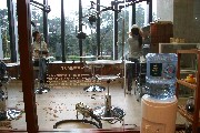 ガラス張りの向こうで、トリマーの方がお仕事。見学がてらチョット給水というお客様が多かったようです。
